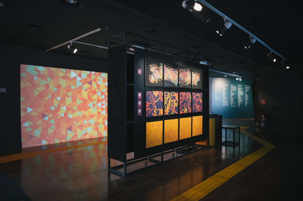 Humans, as well as computers, communicate through codes, the means by which messages travel (signs, gestures, speech, writing). Over the decades, humans and computers have been able to systematize, organize, and relate virtually all types of codes, producing information, predictions, calculations, memory, and art. Art made in code is the result of an artist experimenting with programming computers with the intention of expressing themselves, instructing them on how to perform certain operations, calibrating the possibilities that a program can generate, in a cooperation between code and creativity, determinism and unpredictability, order and chaos. In the exhibition Open Source Art, the artist-programmer Vamoss proposes a poetic trajectory in the counter-flow of artists and programmers: the work, before the public's eyes, projects various images and also the program that constitutes it, with all its parameters, rules, and dimensions. This exhibition is organized into two sections: Interactive and Generative. In the Interactive section, the public is invited to interact with the open-source code, changing the relationship between the presented data, reprogramming it, and experimenting with new presentations. In the Generative Works section, the works are formed at the moment of the exhibition, renewing themselves from time to time, creating unique and unrepeatable images. By sharing the code that forms the core of the images, we can see how everything is done: from the language in which the work was constructed, to the parameters and signals that determine the structure of the work: interaction happens collaboratively, prompting the public to experiment with their own ideas, uncovering possibilities and discovering paths. This is an opportunity to understand how the programs that influence our way of life operate: in hospital machines, in schools, in the media, in cell phones, in social networks, modulating our emotions, guiding our behavior, present in all parts of the planet and beyond, before, during, and after our existences. Understanding how these tools operate and function also makes it possible to imagine how all the things that surround us, visible and invisible, can influence, guide, and affect the way we relate to the world.