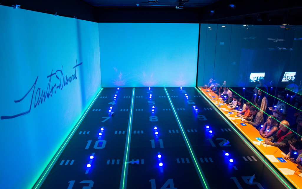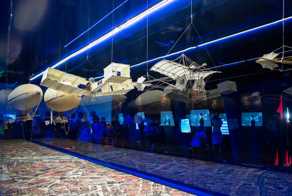 In a playful way, visitors are introduced to physics concepts such as aerodynamics and engine mechanics in the paper airplane workshop: launched onto a runway, the little airplanes activate the "Game of Curiosities," where videos show information about how aircraft work and many other interesting facts.