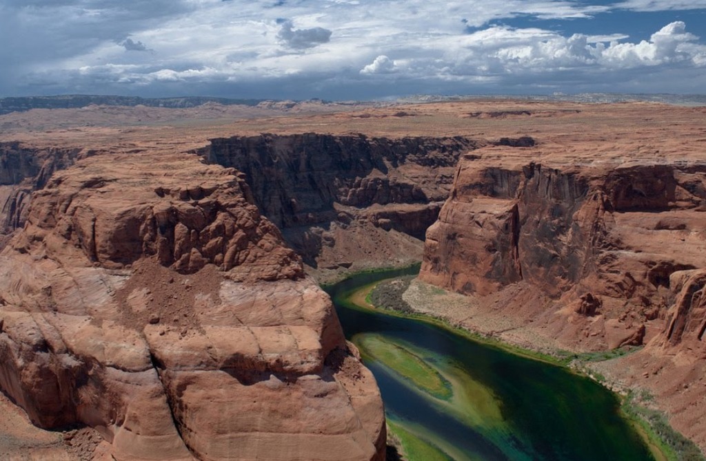 O Rio Colorado, após tantas barragens construídas ao longo de seu curso, não mais consegue desaguar no oceano Pacífico - termina a pouco mais de oito quilômetros do Mar de Cortez, no Golfo da Califórnia.