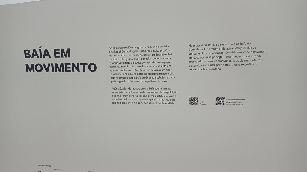 Há muita vida, beleza e resistência na baía de Guanabara. E há muitas iniciativas em prol de sua conservação e valorização. Convidamos você a navegar conosco por essa paisagem e conhecer suas histórias, acessando as telas interativas ao lado da maquete tátil e usando seu celular para conferir uma experiência em realidade aumentada.