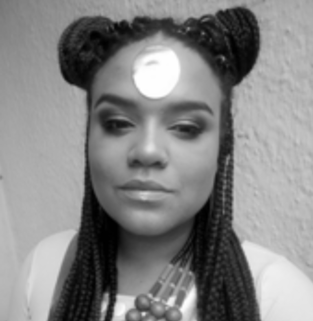 Juliane Vicente, nascida em Porto Alegre (RS) em 1993, é filha de Oyá e neta de Luiza. Multiartista, atua como performer, slammer e cientista afrofuturista, desenvolvendo trabalhos que transitam entre arte, ancestralidade e futuros possíveis. É ministrante de oficinas e possui contos publicados por selos editoriais nacionais e internacionais.